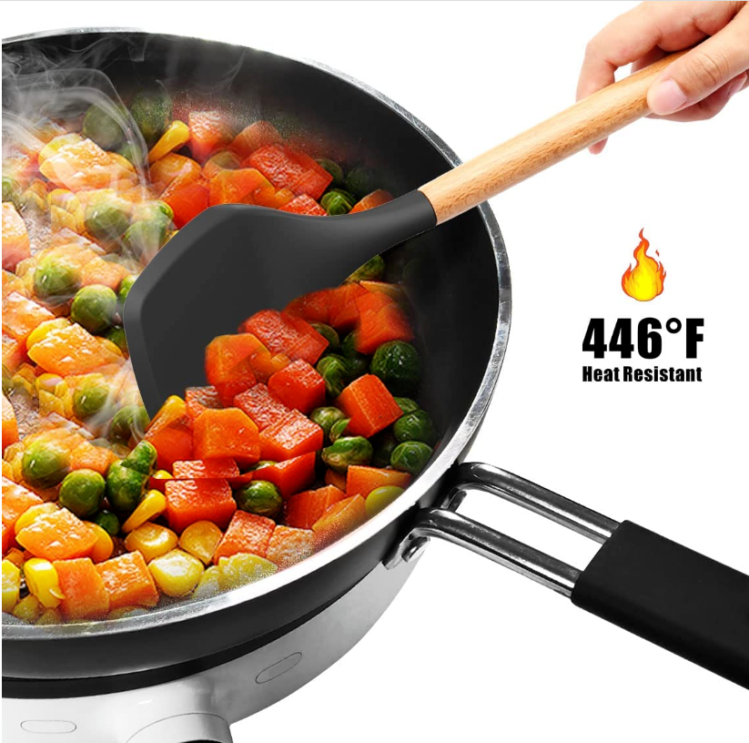 The soft silicone won’t scratch non-stick cookware or your expensive pans. The cookware utensils won’t chip, warp or melt like your old plastic kitchen utensils. Heat resistant silicone (230℃/446F).