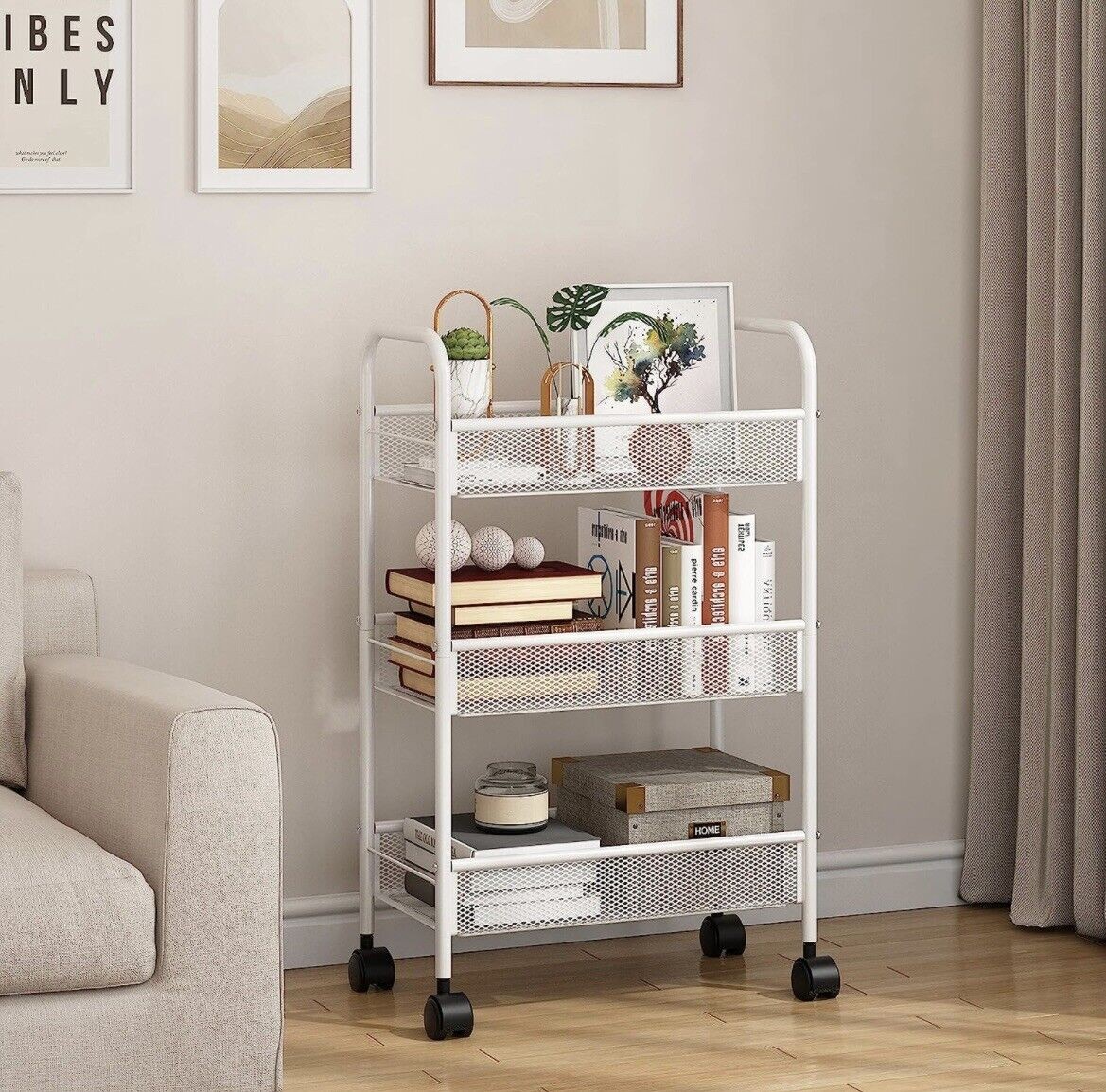 3 Tier Metal Rolling Storage Cart, Utility Organizer Storage Shelves, 4 Wheels