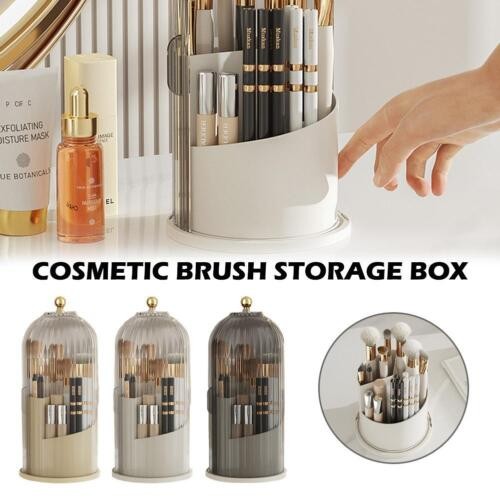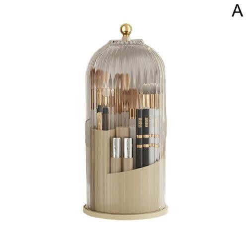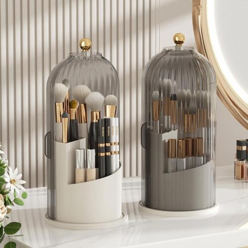 360° Rotating Makeup Brush Storage Box Dustproof Cover Cosmetic Organizer