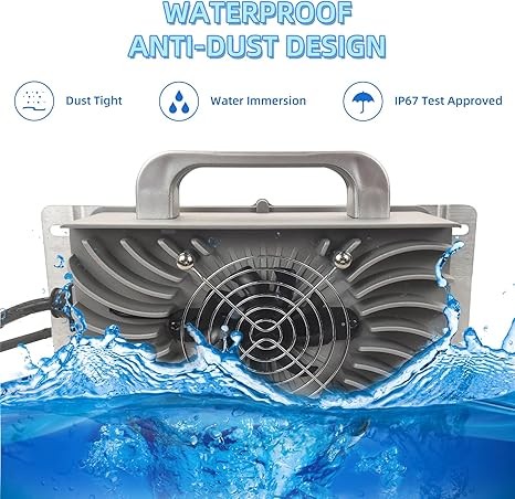• [PORTABLE & LIGHT WEIGHT DESIGN] - Designed with convenience in mind, the waterproof charger weighs in at only 9 lbs,the light weight charger can easily be taken with you. It is constructed with a durable die-cast aluminum alloy casing providing exceptional durability.