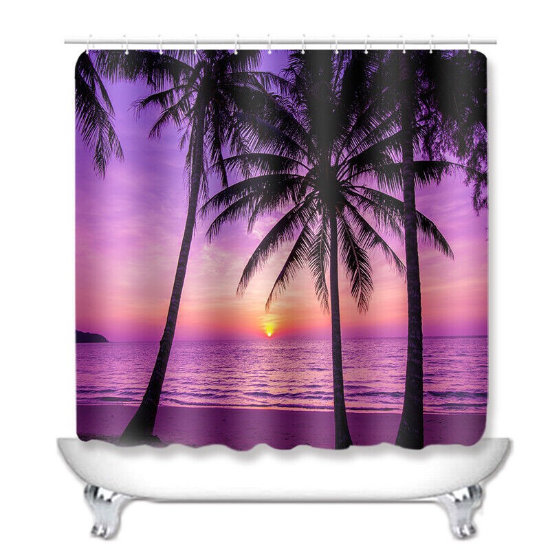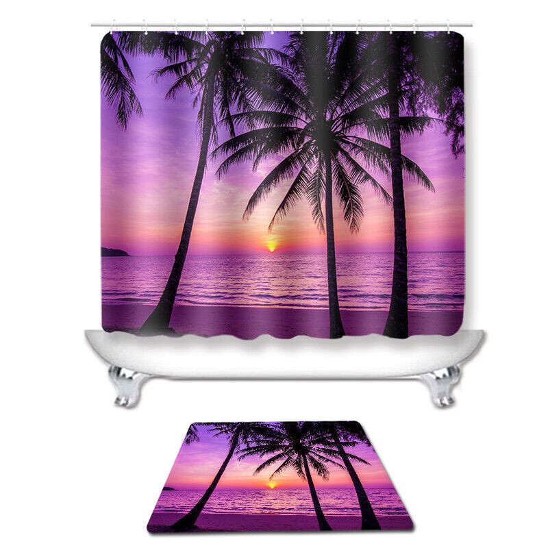 3D Beach Printed Waterproof Shower Curtain with Rug Toilet Cover Bath Mat Set/.-