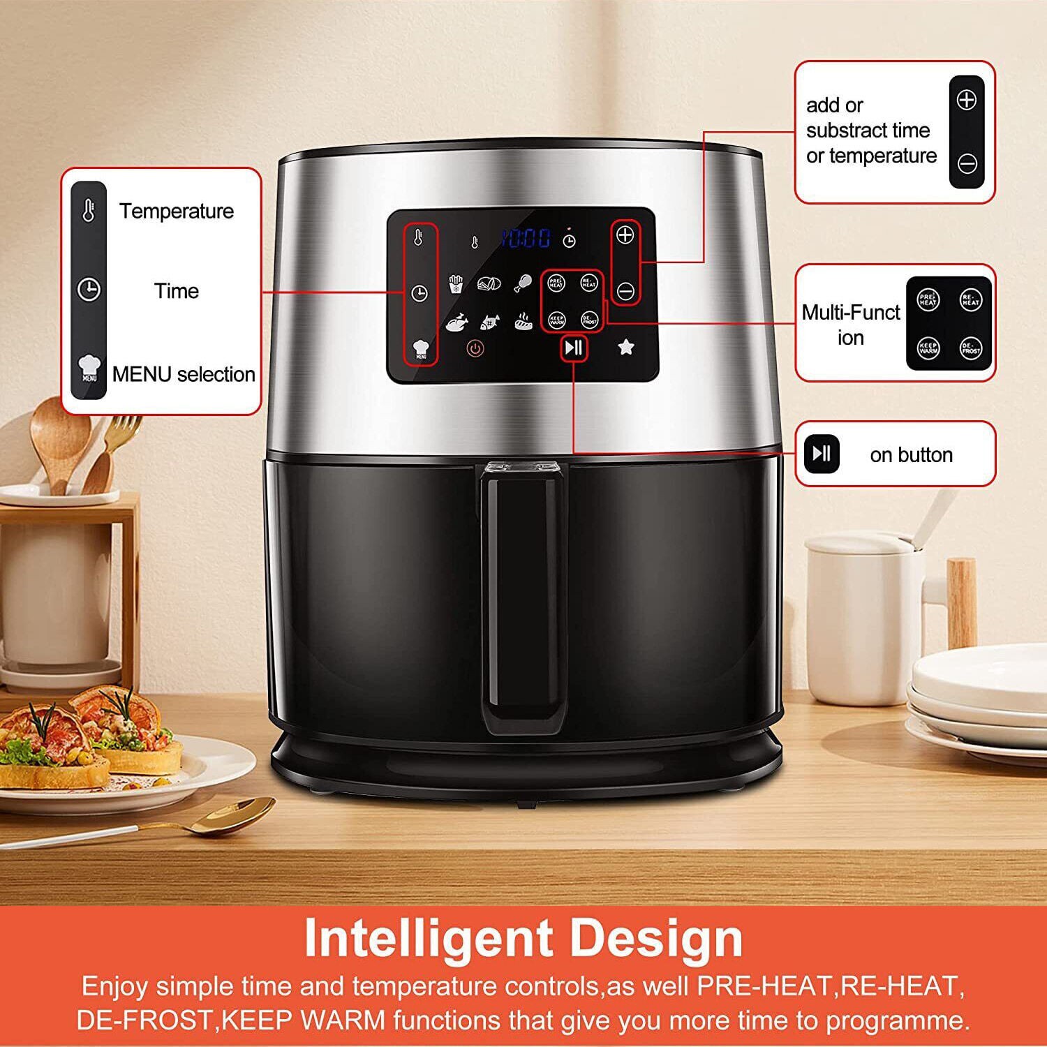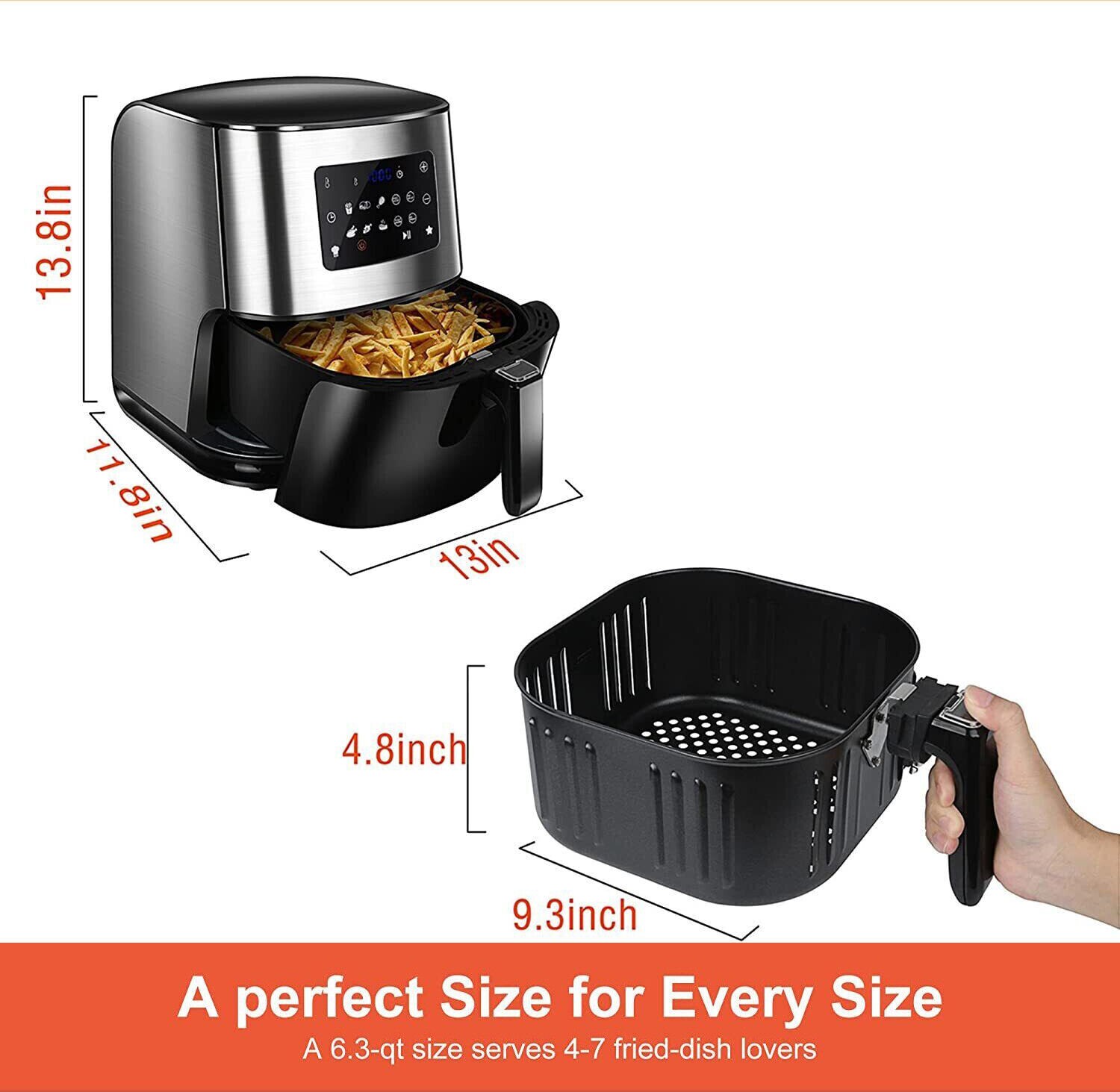 Air Fryer 6.3 Quart Airfryer Oilless Oven Cooker LED Screen 10 One-Touch Presets