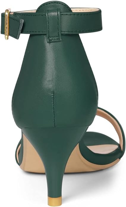 • Cushioned Footbed, Adjustable Ankle Strap with Buckle Closure, Open Toe, Kitten Heel