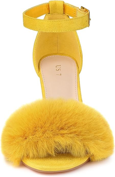 Allegra K Women's Faux Fur Ankle Strap Block Heels Sandals
