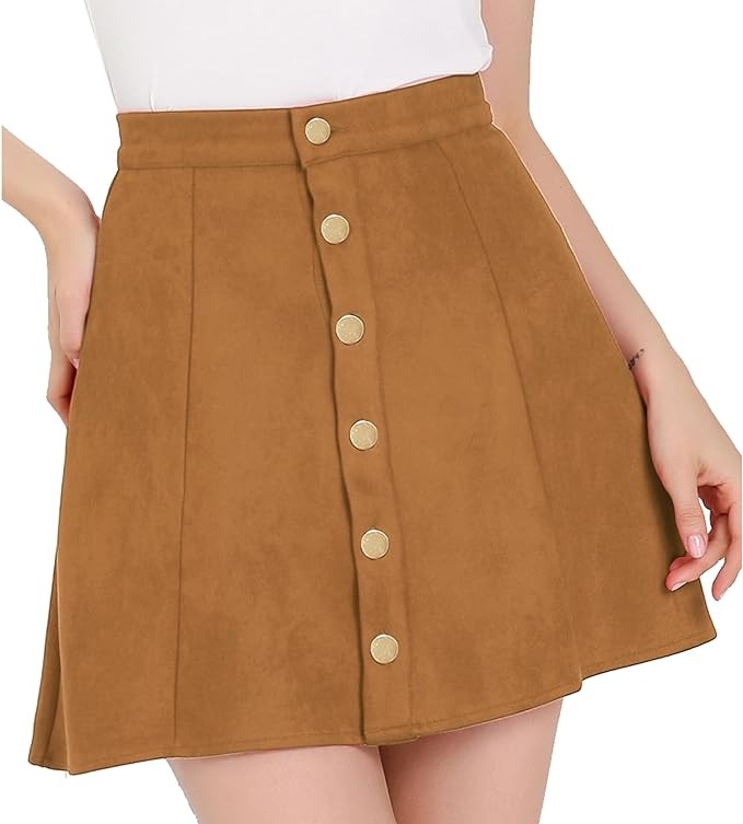 Regular Fit, Front Button Down Closure, Soft Faux Suede Fabric, High Waisted, A-Line, Mini Short Style, Unlined