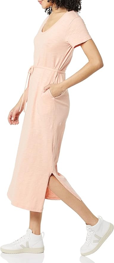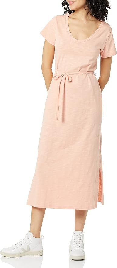 Amazon Essentials Women's Short Sleeve Belted Midi T-Shirt Dress