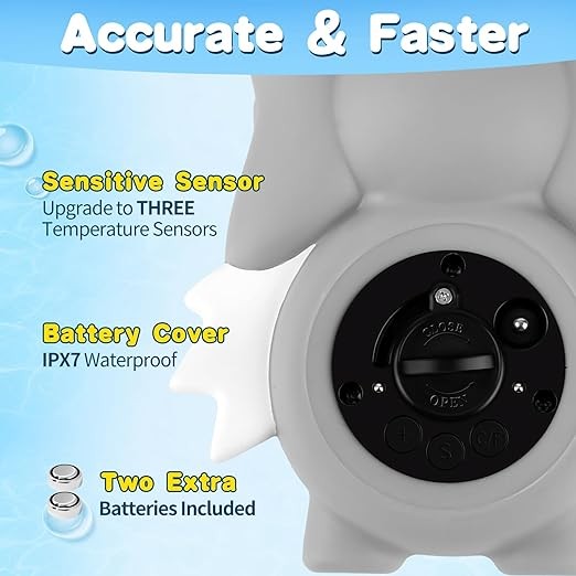 【Show Temperature in Seconds】Our baby bath thermometer is completely waterproof, so you don't have to worry about damaging it in the water. The baby bath thermometer floating toy not only provides accurate temperature readings but also doubles as a fun floating toy, adding joy to bath time. The thermometer instantly displays the temperature upon contact with water, updating every 5s, without the need for complicated instructions or settings,for your baby to enjoy bath fun.
