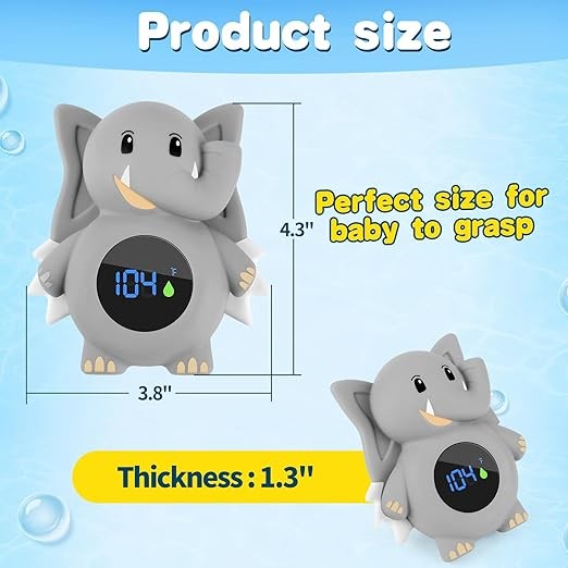 Baby Thermometer,with LED Display and Temperature Warning,Kids' Bathroom Safety Products,Bath Thermometer for Infants, Newborn,BPA-Free Bath Tub Thermometer (Elephants)
