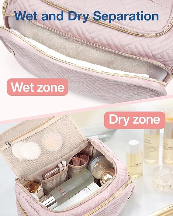 • ?????-?????? ??????: The make up Bag is designed with 3 inner mesh pockets, a mesh zipper pocket, and 2 side dry pockets, perfect for storing all your travel-size toiletries and accessories.