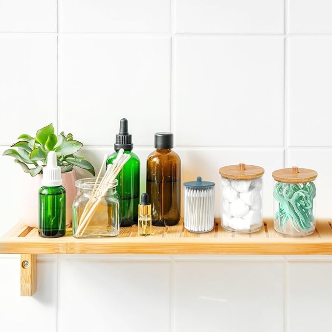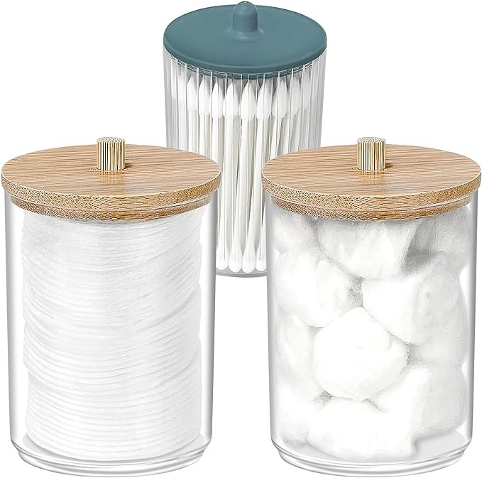 Organize in Style: Receive 2 bonus bathroom canisters for elegant bathroom & vanity storage and organization. Keep your cotton rounds, cotton balls, cotton swabs and floss picks easily accessible while adding a touch of sophistication to your space.