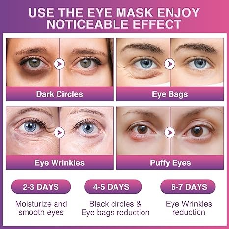 • 【Advanced Technology】The eye patches use innovative technology to achieve 98% one-way absorption rate. It can provide 10 times the moisture and nutrients of ordinary eye patches. Within 15 to 20 minutes, it will quickly repair and nourish your eye skin, effectively helping to relieve puffiness, dark circles, bags and fine lines,achieve anti-aging effect.