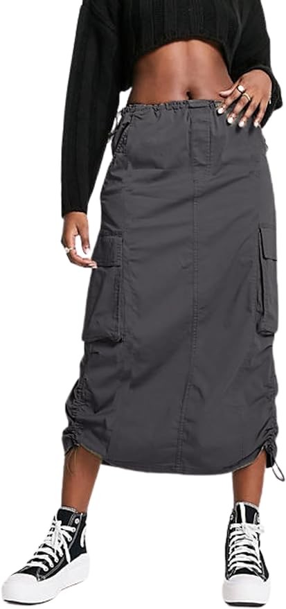 Features: This stylish cargo skirt combines trendy Y2K aesthetics with practicality. Y2k Cargo Long Skirts for Women features a solid low waist and an elastic waistline with a drawstring design for a customized fit. The cargo skirt long also includes two side function pockets and boasts split ends for added flair.