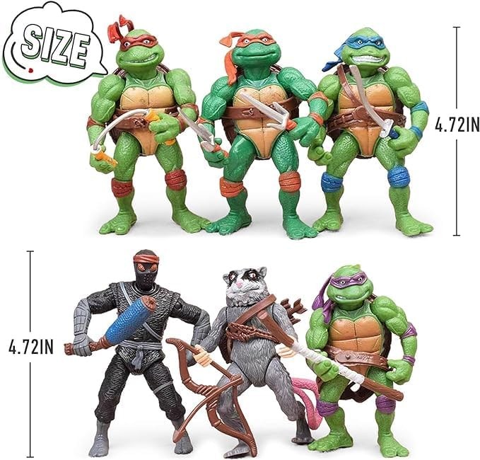 BMDZBZVW Turtle Action Figures 4.8" Turtles 6-Pack Figure Toys for Halloween Decorations Collection Birthday Action Figures Gifts for Kids