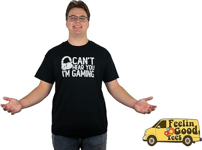 • AWESOME FIT: Fits True to size, great fit and feel - Wash with cold water, inside out. Want to make dad look like a super star? This shirt has a great look and cool fit. This men's funny t shirt fits great and is great for men, teenagers and kids. Can't Hear You I'm Gaming. Makes A Great present for someone special.