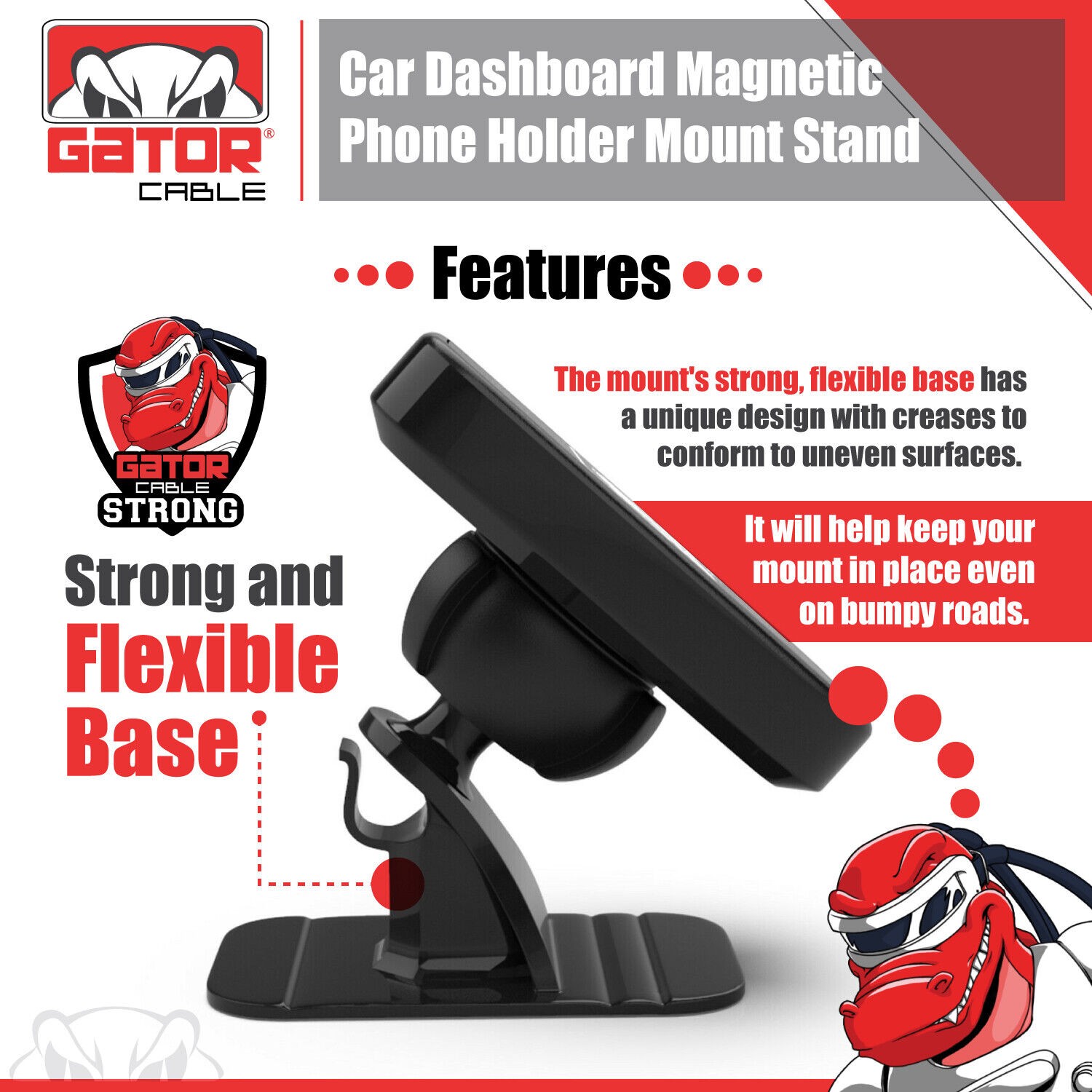 2 Metal Plates Included, Powerful Magnetic Core, Strong and Sturdy Base Mount, Adjustable Angle