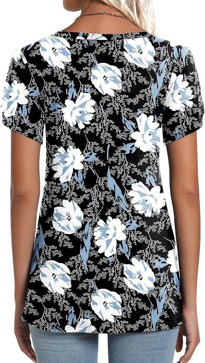 CATHY 2024 Womens Summer Tunics Tops Short Sleeve Casual T-Shirts V Neck Loose Comfy Tee Lightweight Cute Blouse