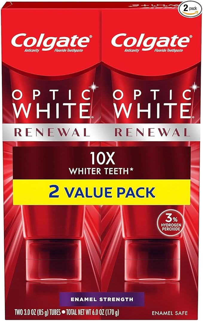 Colgate Optic White Renewal Teeth Whitening Toothpaste, Enamel Strength, 2 Pack, 3 Oz Tube