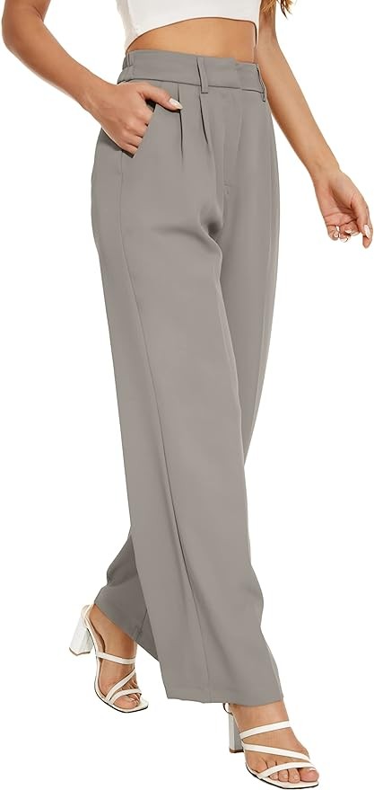 • FEATURE -- back elastic waist, high-waisted wide leg style, pleated front, loose fit, breathable and soft fabric, zipper closure, two side pockets.