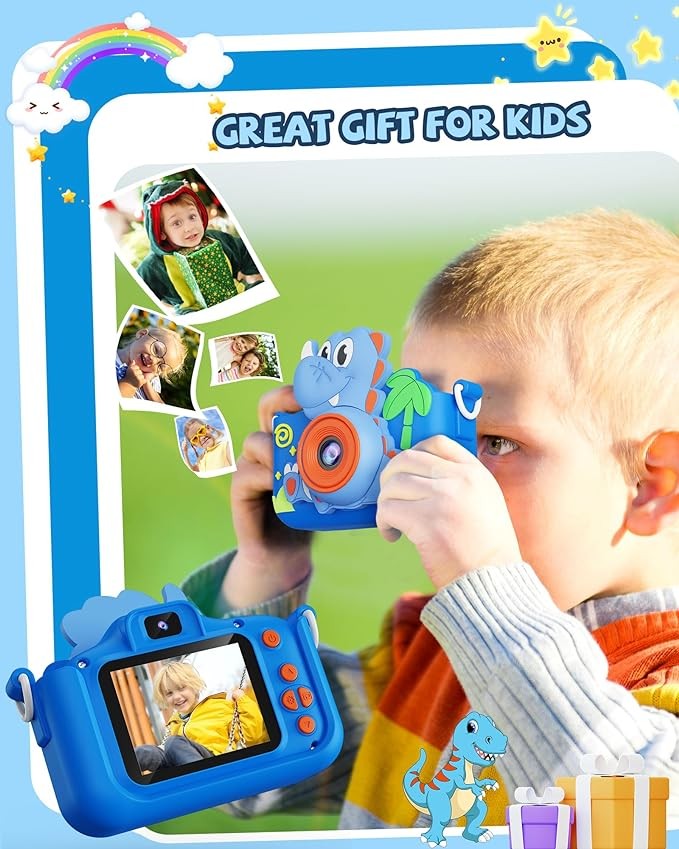 • ?Perfect Gifts for Kids:Perfect Gifts & Toys for Kids: This kids camera design with cute unicorn/dinosaurs cartoon case, children will like it and enjoy to use this camera recording every wonderful moments.It is a perfect Christmas, Birthday, Festival ,Holiday gifts for girls and boys aged 3~12.