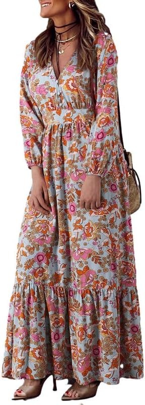 Soft Fabric:This Bohemian Maxi Dress Is Made Of 100% Viscose,Soft And Comfortable,Breathable,With Good Drape,Suitable For Spring,Summer,And Autumn Wear.