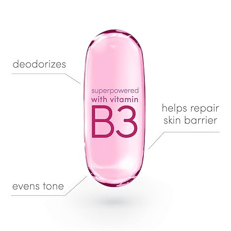 REVOLUTIONARY VITAMIN SCIENCE: Dove VitaminCare+ is enriched with skin-loving Vitamin B3 (yes, the famous Niacinamide!). Groundbreaking research has found that B3 helps skin’s natural odor defense.