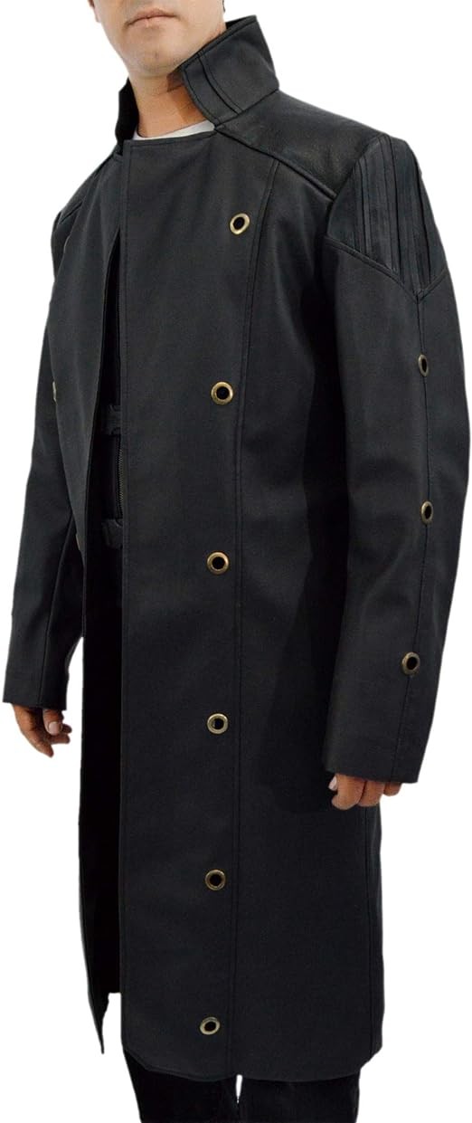 F&H Men's Gaming Genuine Leather Deus Trench Coat