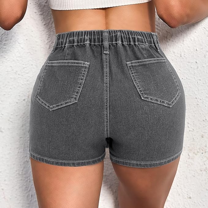 Fisoew Womens Summer Denim Skirt Casual Asymmetrical Hem Skorts Bodycon Jean Shorts
