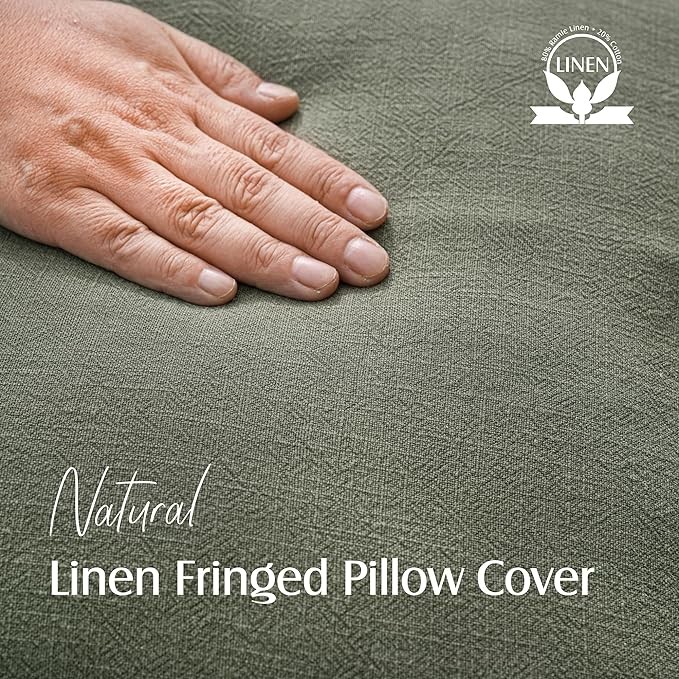 Foindtower Set of 2 Decorative Linen Fringe Throw Pillow Covers Cozy Farmhouse Boho Cushion Cover with Tassels Soft Accent Pillowcase for Couch Sofa Bed Living Room Home Decor 20×20 Inch Olive Green