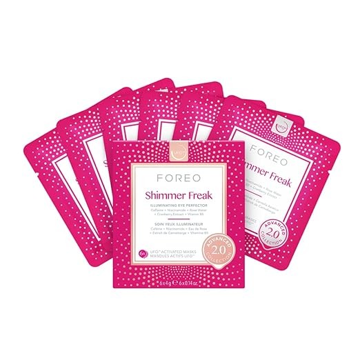 FOREO Shimmer Freak Advanced Collection 2.0 UFO-Activated Facial - Eye Contour Illuminating - Beauty & Personal Care - Rose Water - Niacinamide - All Skin Types - Wrinkles - Puffiness - 6 pcs in Pack