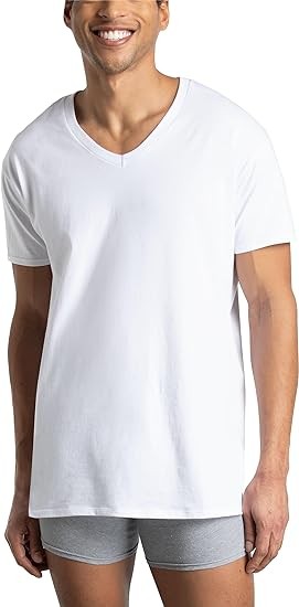 Fruit of the Loom Men's Eversoft Cotton Stay Tucked V-Neck T-Shirt