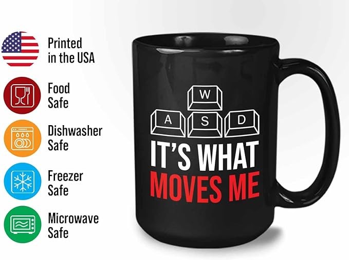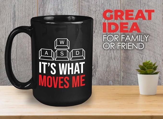 Gamer Coffee Mug 15oz Black - WASD Its What Moves Me - Video Game Lover Funny Humor Console Multiplayer Gaming Player Lover Friendship