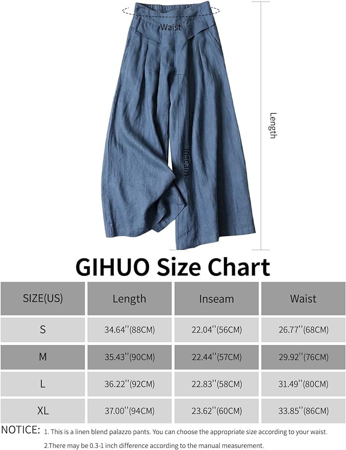 • Occasion: Cotton linen wide leg pants, perfect choice for casual daily, yoga, vacation, school, jogging, summer beach flowy linen blend pants and etc. Size: S=US(4-6), M=US(8-10), L=US(12-14), XL=US(16-18).