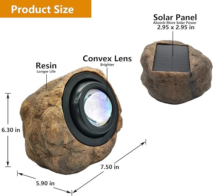 【Two Lighting Modes】The rock imitation solar pathway lights have two lighting modes: warm white light (3000K)and cold light(5000K). These lights are suitable for garden, pathway, patio, walkway, yard and more.