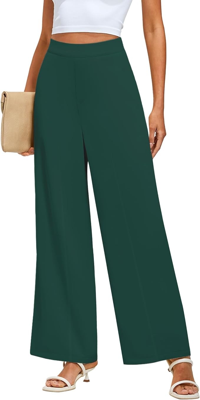 GRAPENT Wide Leg Dress Pants Women High Waisted Pull On Business Casual Work Pants Elastic Waist Dressy Trousers Pockets