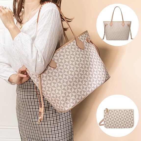 Handbags for Women Designer Fashion Purses Top Handle Satchel Shoulder Bags 2pcs with Small Wallet (White)