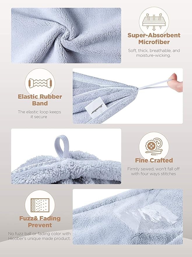 • SOFT & ULTRA LIGHTWEIGHT: The Hicober microfiber hair towel much gentler than regular hair towels, all in a tender cuddle with super-light microfiber.