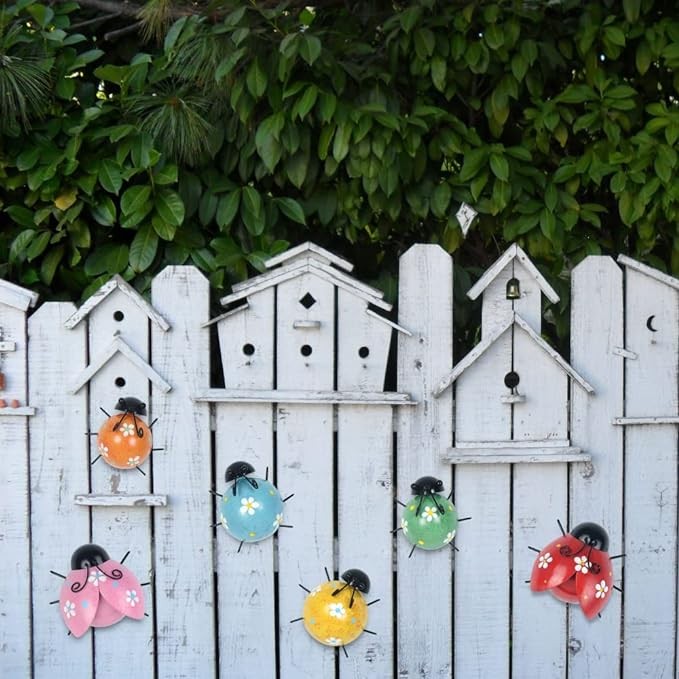 hogardeck Metal Ladybugs Outdoor Wall Decor, 6 Pack Wall Art Garden Sculptures & Statues Outdoor Decorations for Patio, Handmade Gift, Spring Garden Decor for Outside