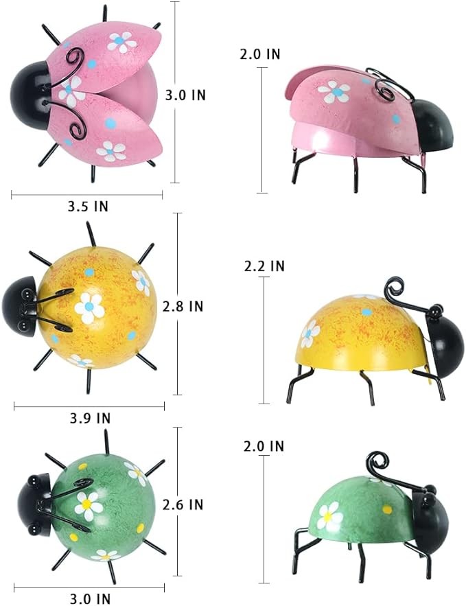 【EASY TO INSTALL】- There is one hook on the center inside of the wall art ornaments for easy hanging. Attractive metal garden art bugs can be fastened firmly and sturdily to wherever you want to decorate. You would put a smile on your face just looking at them. We provide 3 Sizes of ladybugs: 3.5 x 3 x 2 inch /3.9 x 2.8 x 2.2 inch / 3 x 2.6 x 2 inch