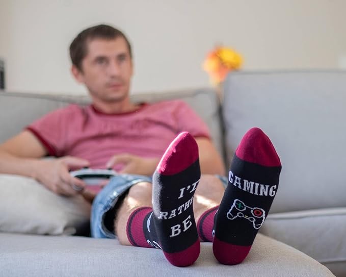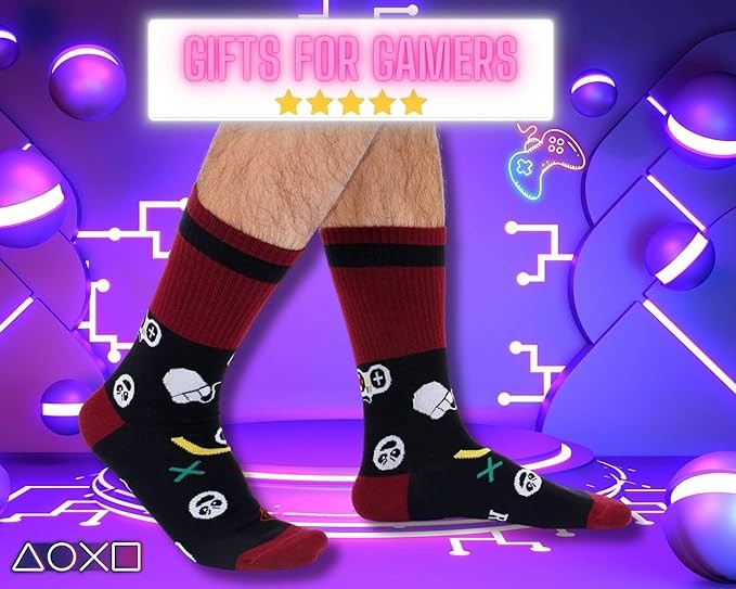 ★【 PERFECT GIFT FOR GAMER 】We interrupt your game to bring you our unique collection of fun gifts for gamer! If you are looking to treat that special someone in your life who loves playing games then look no further they will love these. Gamers will love wearing these funky socks at work, school, or playing video game. They're an easy Father's Day gift idea for dads, and a fun gift at Christmas and brithday for your sons, brothers and friends or or anyone who would rather be gaming.
