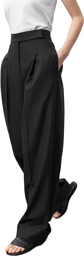 JEAAMKSSER Women’s Wide Leg Trousers Pants High Waisted Black Business Work Straight Leg Long Pants