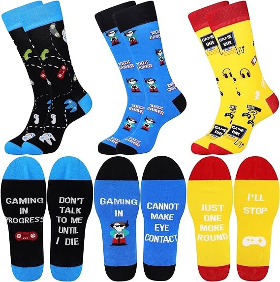 • Gamer Gifts for Men: These funny gaming print socks are the good choice for gaming gifts for men. These funny cool gaming socks are perfect gifts for men, boyfriend and Dad. They are very good choices for birthday present, gift for Christmas Day.