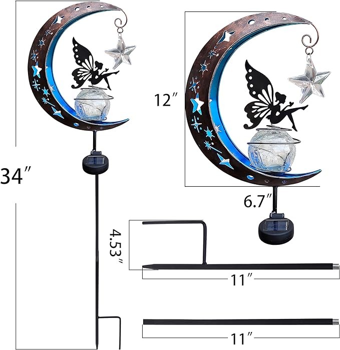 【Fairy Decoration】Solar light is added with fairy ornament on crackled glass ball, when night falls, the soft light surrounds the fairy to make fairy solar lantern more lovely and beautiful in your garden