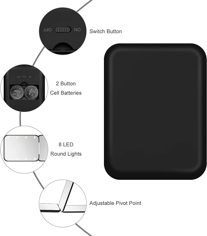 • [Illuminate Exclusive Your Beauty] - Our travel mirror is equipped with eight super bright LED fluorescent lights, which will reach maximum brightness when you turn on the button placed on the back, allowing you to better show the most realistic look in dimly lit scenarios, and even in such environments, it can perfectly complement your beauty.