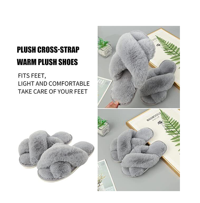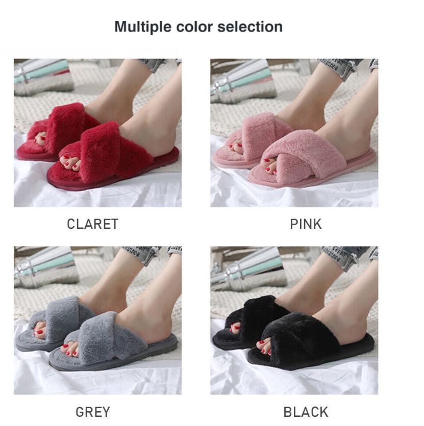 Women Fluffy Slippers Women Cross Band Plush Ladies Slippers for Indoor Outdoor