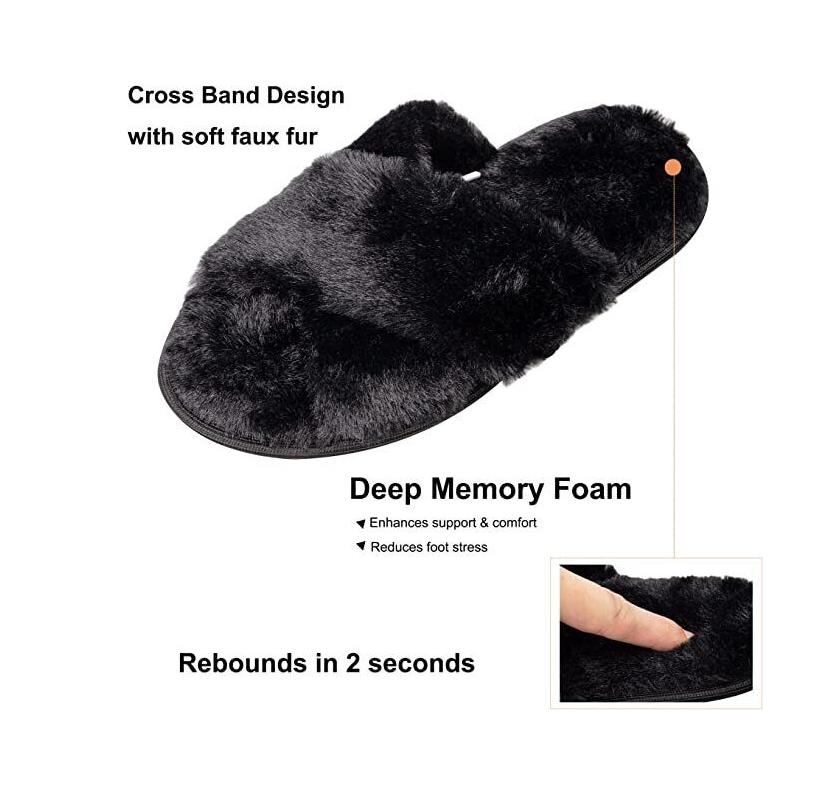 • ???-???? & ??????:) The fluffy sliders womens have a non-slip textured bottom and the insole is padded with memory foam to give you plenty of support and keep your feet comfortably loose.