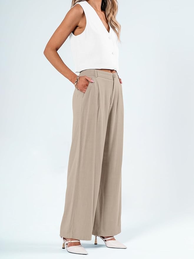 LILLUSORY Linen Dress Pants Women’s Wide Leg Flowy Pants with Pockets