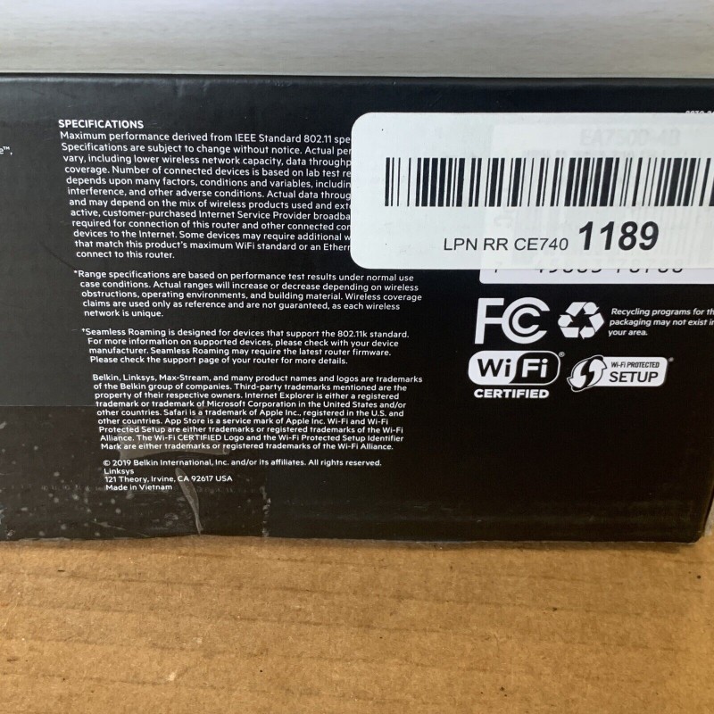 Linksys AC1900 Smart WiFi Router Home Networking MU-MIMO Dual Band Wireless Gigabit WiFi Router Speeds up to 1.9 Gbps Coverage up to 1,500 sq ft Parental Controls up to 15 Devices. MODEL EA7500-4B