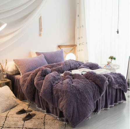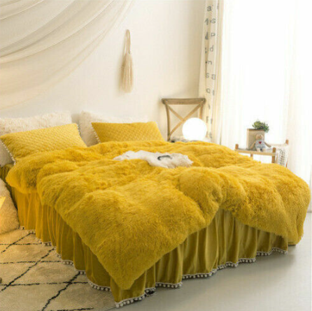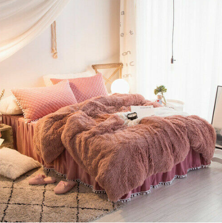 Luxury fruit green plush fluffy mink velvet duvet cover Qui stitched bedding set