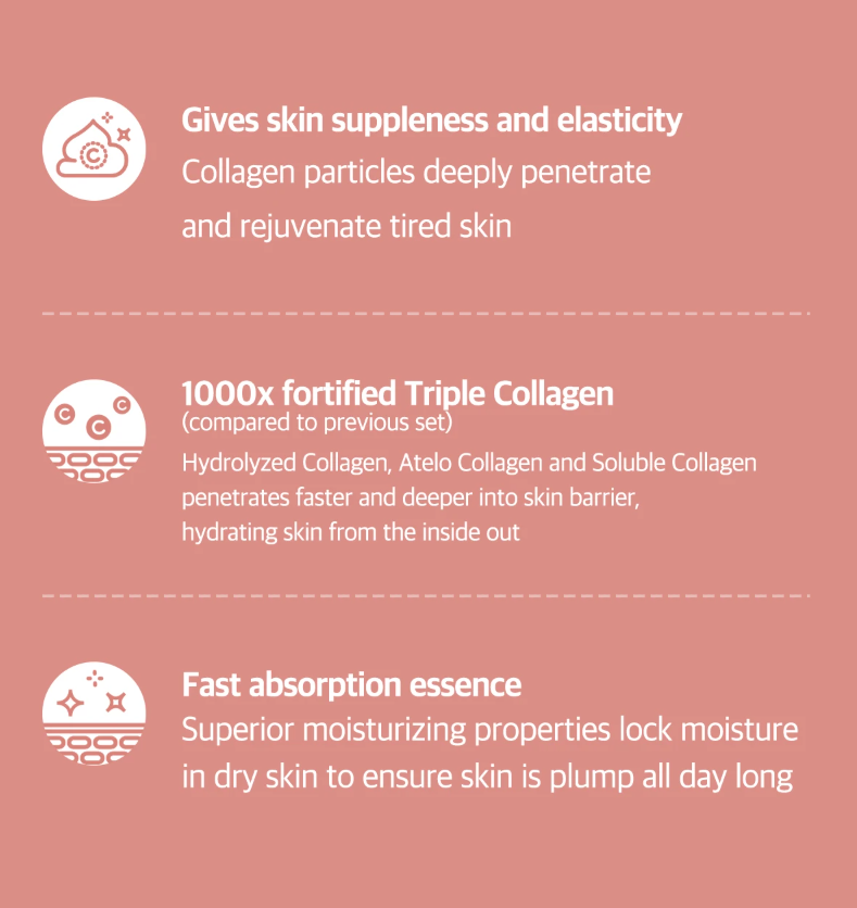 • Harness the power of 1000x fortified collagen and return your skin to its youthful glory.