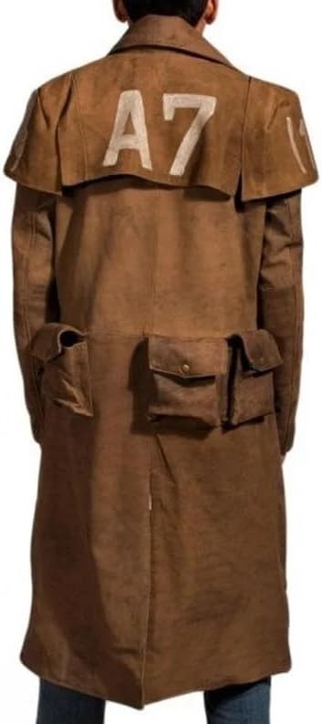 Men's New Vegas Veteran NCR Ranger A7 Duster Brown Suede Leather Long Trench Coat